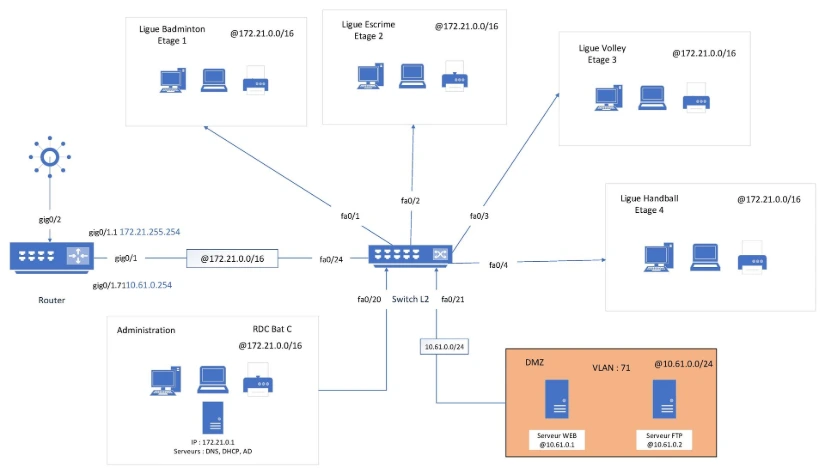 La Maison des Ligues de Lorraine (M2L) est une structure qui fournit des prestations d'hébergement et des services informatiques mutualisés à diverses ligues sportives régionales. Dans le cadre de l'évolution de son Système d'Information, j'ai été chargé de concevoir et de déployer une infrastructure réseau et serveur sécurisée capable de supporter ces services.